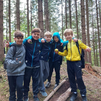 Gerade mal angekommen, ging es schon mit einigen Spielen im Freien los. Nach einer Wanderung zum Pilgerkreuz konnten die Schülerinnen und Schüler im Wald ihrer Kreativität freien Lauf lassen. Es wurden Murmelbahnen, Mandalas, Schutzhütten, etc. gebaut – und das rein aus Naturmaterialien, die so im Wald zu finden waren.